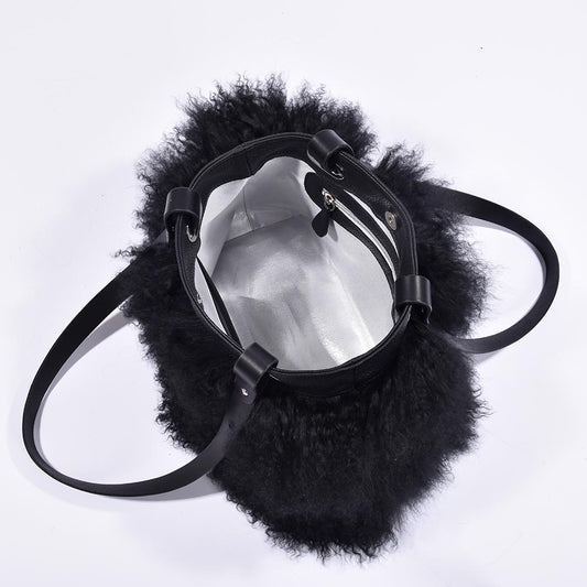 Mongolian Sheepskin Tote Black